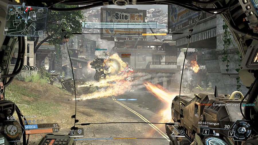 Der Ego-Shooter macht einige Dinge anders als die Genre-Konkurrenz und tut dies mit einer gewissen Frechheit. Tester auf der ganzen Welt schauen irritiert auf ihre Strichlisten und wollen die Geschichte, den Einzelspieler, die Ladezeiten oder auch die ausgereifte Technik bewerten – und müssen Abstriche bei all diesen Punkten machen. Zum Teil, weil sie gänzlich fehlen. Respawn hat beispielsweise keinen Singleplayer programmiert, die Geschichte ist nicht der Rede wert und den grafischen Schluckauf hat man auf der Xbox One auch nicht in den Griff bekommen. Warum hat man also trotzdem das Bedürfnis eine verflucht gute Note zu vergeben?! Die üblichen Parameter in Sachen Benotung greifen jedenfalls nicht. Das übersichtliche Menü führt euch durch verschiedene Spielmodi, darunter Deathmatches, Eroberungsvarianten und auch Capture the Flag. Kein Überfluss, dafür alles gut besucht. Wenngleich jeder Modus einen anderen Ansatz verfolgt und sich eure Taktik wie von selbst entsprechend anpasst, bleibt das Spiel im Kern immer gleich: Man startet als agiler Pilot und feuert solange aus allen Rohren, bis man einen Titan vom Himmel bestellen kann. Dann geht es meist in der Kampfmaschine weiter, bis diese den Geist aufgibt und zum Ausstieg via Schleudersitz einlädt. Es herrscht immer unfassbar viel Bewegung und jede Menge Bots machen das Schlachtfeld lebendig. Dafür gabs viel Kritik, mir gefällt das Füllmaterial jedoch. Warum denn auch nicht? Die 15 Karten sind aufs Wesentliche konzentriert, aber nicht klein. Einen Kampf findet man immer. Achso, es fühlt sich meines Erachtens genau deshalb nicht so an, als spielten hier lediglich sechs Spieler gegeneinander.