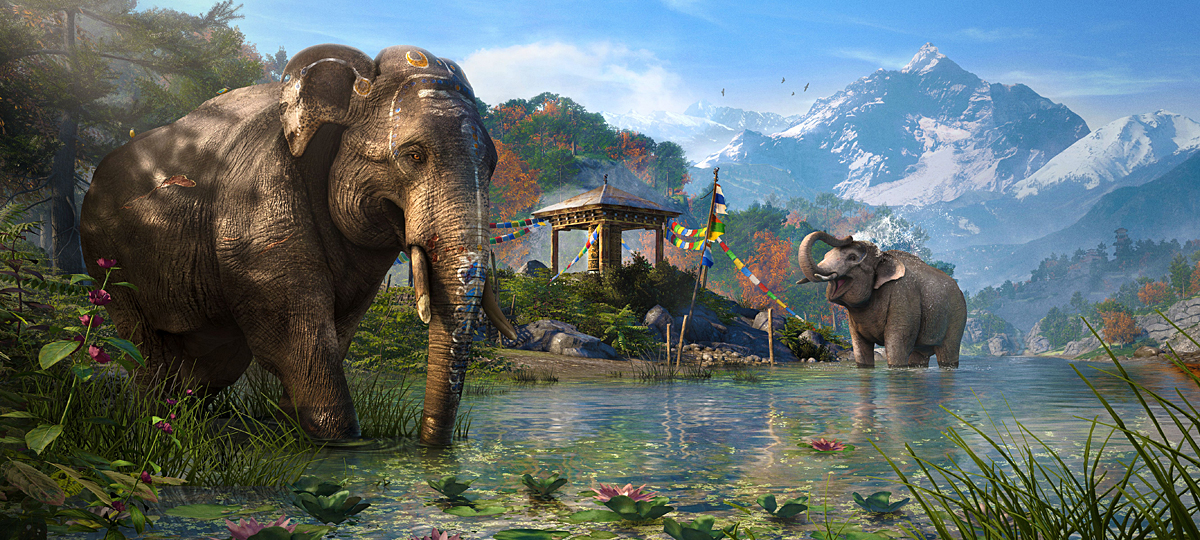 Die Entwickler lassen euch im Prinzip freie Hand, sogar bei der Auswahl der Missionen. Die übersichtliche Karte hilft euch beim Voranschreiten in der Story, zeigt euch aber auch alle Sidequests an. Die sind bisweilen ziemlich irre: Geht für einen durchgeknallten Designer auf die Jagd oder helft mit riskanten Stunts dem aufstrebenden Kyrati-Filmstudio ein paar fetzige Videos zusammenzuschneiden. Euer Alter Ego wird aber auch mit der Beschaffung von Lebensmitteln betraut, rettet Geiseln und schützt Konvois. Wer als guter Samariter in die Geschichte eingehen möchte und jedem ein bisschen hilft, der ist problemlos über 35 Stunden mit Far Cry beschäftigt. Nicht eingeschlossen sind darin die vielen Minuten, die man Kyrat einfach nur genießt und erlebt. Wunderbare Atmosphäre und Optik, exotische Tiere, versteckte Höhlen voller Geheimnisse und immer mal wieder stolpert man eher zufällig über sogenannte Karma-Ereignisse, bei denen man eher unverhofft zum Freund und Helfer für die Einwohner der Umgebung werden kann. Der agile Ajay ist dabei nicht ausschließlich zu Fuß unterwegs, er erklimmt steile Felswände flott mit einem Enterhaken, schwingt sich ans Lenkrad diverser Fahrzeuge oder fliegt mit einem Gyrokopter über Bergkämme und Felder. Die Steuerung der Vehikel ist zunächst etwas merkwürdig. Ich brauchte eine gute Stunde, bin dann aber souverän durch die Gegend oder direkt über meine Widersacher gerast.