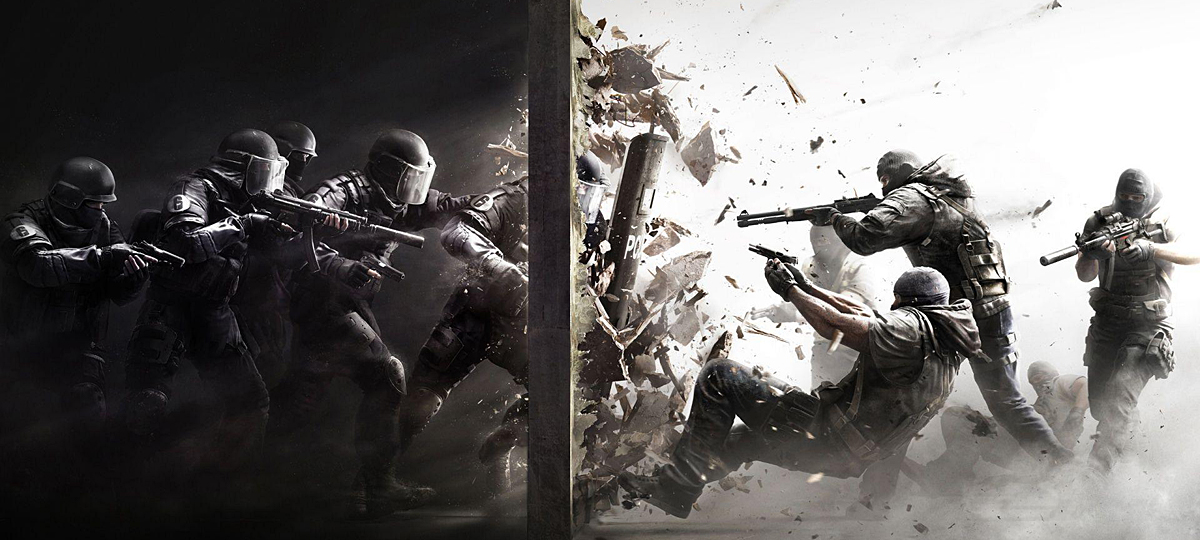 Das Hauptmenü unterstreicht jene kesse Aussage meinerseits. Nur drei Spielmodi stehen zur Auswahl, einer davon ist der Mehrspieler. Wer, wie ich, immer erst ein wenig üben will, der widmet sich am besten den Situationen. Die ersetzen den Einzelspieler, sind aber eigentlich nur ein umfangreiches und ziemlich schweres Tutorial. Im Grunde genommen macht man hier all das, was man im Hauptspiel machen kann, aber alleine. Was völliger Unsinn ist. Aber KI-Verbündete werden euch auch bei z. B. einer Geiselnahme nicht zur Seite gestellt. Ebenfalls ohne KI, aber dafür mit Fremden oder Freunden, funktioniert die Terroristenjagd. Hier habe ich die meiste Zeit verbracht und in zufälligen Spielmodi den internationalen Terror bekämpft. Bomben entschärfen, Geiseln befreien oder Gebiete sichern sind eure Aufgaben, wobei das Spiel strikt nach Angriff und Verteidigung trennt. Die elf Operator, die für den Angriff zur Auswahl stehen, besitzen herrliche Zerstörungswerkzeuge und können die gesamte Karte nutzen. Verteidiger hingegen sind besser gepanzert, haben Minen und Sprengfallen und werden vom Spiel dazu gedrängt, die meiste Zeit wie feige Camper in der Gegend herumzuliegen. Allen Einsatzkräften gemein ist eine Spezialfähigkeit: Sledge reißt mit seinem Hammer fast alle Wände ein, der mächtige Schild von Blitz blendet die Feinde und wenn Kapkan die Türen mit Laserfallen gesichert hat, zerfetzt es jeden Eindringling. Diese Fähigkeiten sind nicht das A und O, können einen Kampf aber durchaus stark beeinflussen. Die markanten Kämpfer tragen auf jeden Fall zur Atmosphäre bei und das Fireteam kann sich schon bei der Wahl der Figuren auf eine Strategie einstellen.