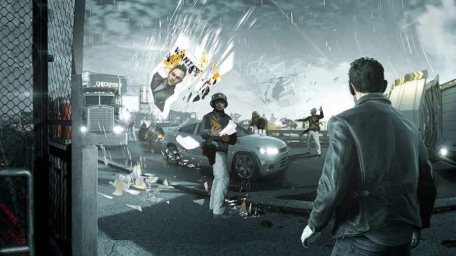 Nicht ganz so revolutionär gibt sich Quantum Break in Sachen Gameplay. Ein 3rd-Person-Shooter mit dem Fokus auf Action, also mehr Schusswechseln als Rätseln. Die Söldner von Monarch Solutions, die euch seit dem Defekt der Zeitmaschine auf die Pelle rücken, machen keine Gefangenen. Mit Schrotflinten und Pistolen drängen sie euch zielstrebig in die Ecke und wer nicht rechtzeitig hinter Mauern und Wänden Schutz sucht, wird durchlöchert und ausgelöscht. Wie gut, dass Jack seinerseits sicher im Umgang mit Feuerwaffen ist – das allein reicht jedoch nicht. Seit der Explosion, also dem Moment, in dem er von Chronon-Partikeln verseucht worden ist, kann er die Zeit manipulieren und zu seinen Gunsten beeinflussen. Time Shield, Time Rush oder Time Blast nennen sich die Fähigkeiten im Menü, im Kampf sorgen sie für Angst und Missordnung. Versetzt den Feind in eine Starre, bewegt euch in Überschallgeschwindigkeit oder flieht in ein Zeitloch, also einen Schutzschild. Eure Kräfte machen sich offensiv wie defensiv bezahlbar, sichern euch in hitzigen Gefechten das Überleben und verwandeln das Schlachtfeld mitunter zu eurem Spielplatz. Es mag gar nicht so spektakulär klingen, aber wenn sich alles um einen herum in Zeitlupe bewegt, ihr plötzlich hinter den Feindeslinien auftaucht und strategisch einen Widersacher nach dem anderen aus dem Spiel nehmt, ist das ziemlich eindrucksvoll.