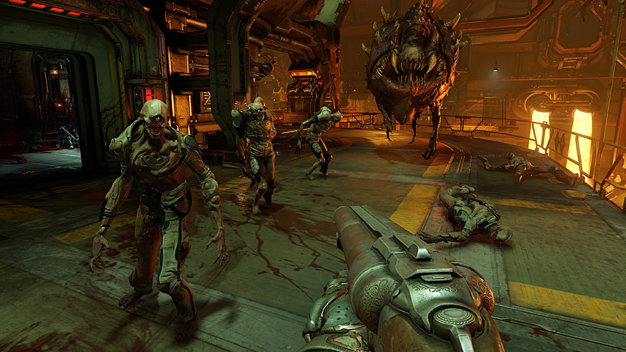 Kommen wir mit wenigen Worten zur hitverdächtigen Story rund um den Planeten Mars, die packender nicht hätte sein könnte. Haha, nein. Tatsächlich nimmt sich DOOM absolut nicht ernst und schickt euch in eine Forschungsstation auf dem Roten Planeten, öffnet Portale in die Hölle und lässt euch mit Androiden und Untoten agieren. Wirklich viel erzählt wird nicht, allerdings sind die wenigen Dialoge hervorragend ins Deutsche eingesprochen und machen Stimmung, ebenso wie die Hintergrundmusik – allerdings auf andere Art und Weise. Die Grafik punktet mit der bereits beschriebenen konstant-flüssigen Darstellung und einem hübschen Look. Sehr plastisch wirken vor allem die Dämonen, bei denen es mir leider am Ende an alternativen Glory-Kill-Animationen fehlte. Außerdem hat mich der Ausflug in die echte Hölle optisch nicht überzeugt. Insgesamt solide und gut; der Titel hat technisch alles, was man braucht – aber nicht mehr.
